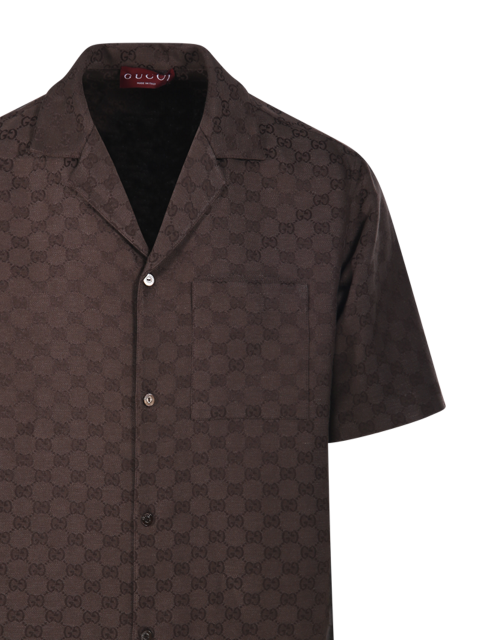 MEN GUCCI BROWN LINEN BOWLING SHIRT