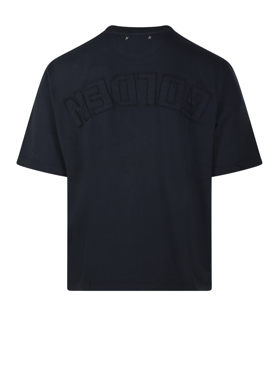 MEN GOLDEN GOOSE BLACK COTTON RELAXED FIT T-SHIRT LOGO PATCH
