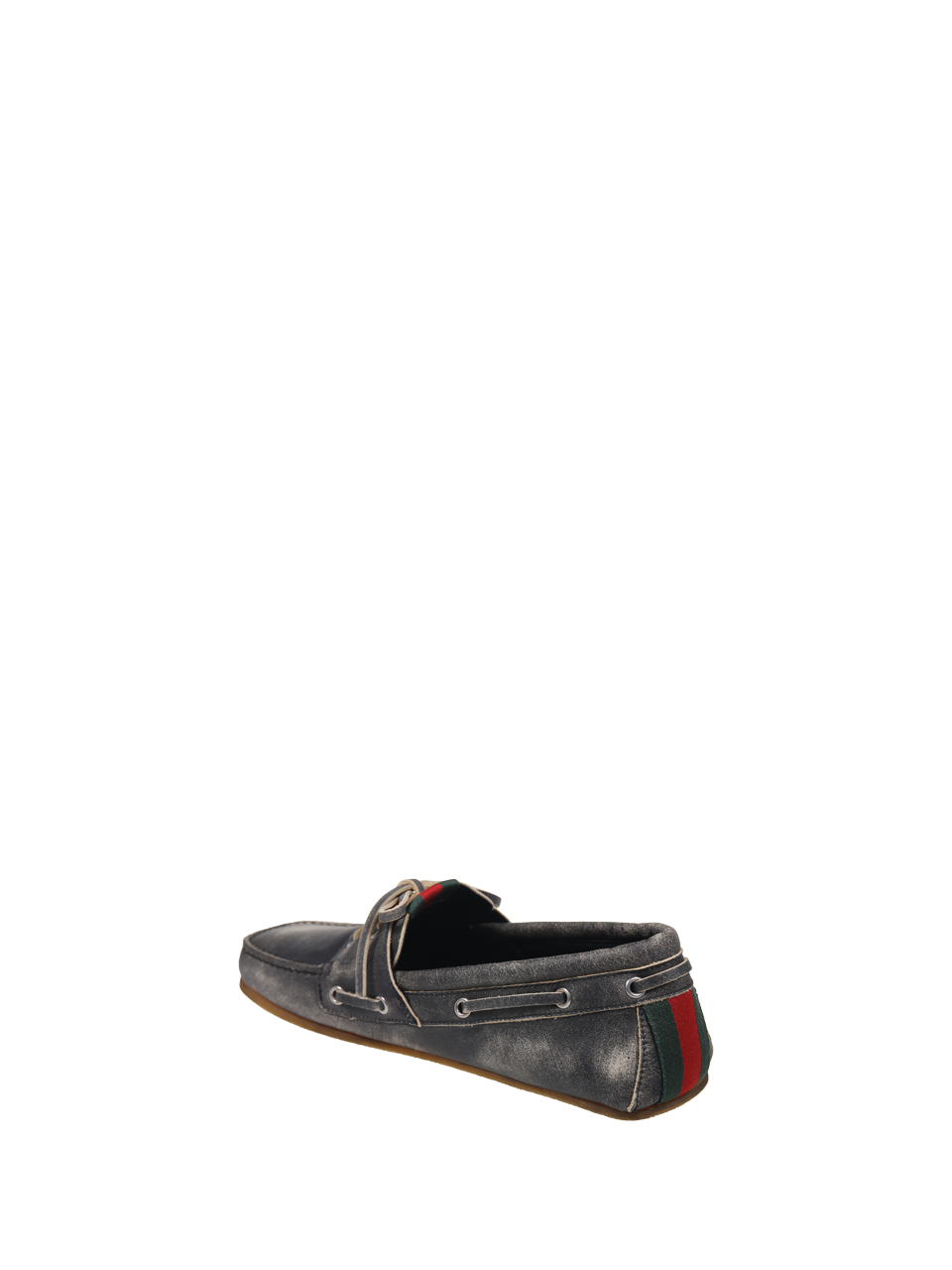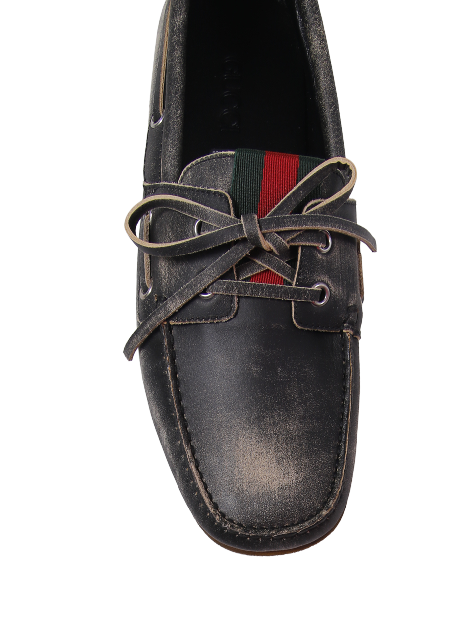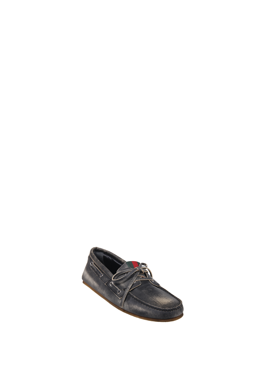 MEN GUCCI BLACK CALF SKIN AND RUBBER BOAT LACE-UP LOAFER
