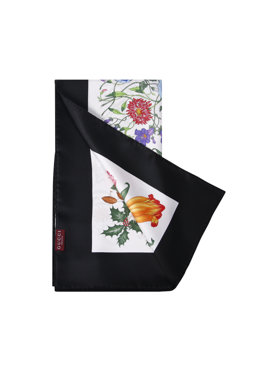 WOMAN GUCCI BLACK SILK FLORA TWILL FOULARD
