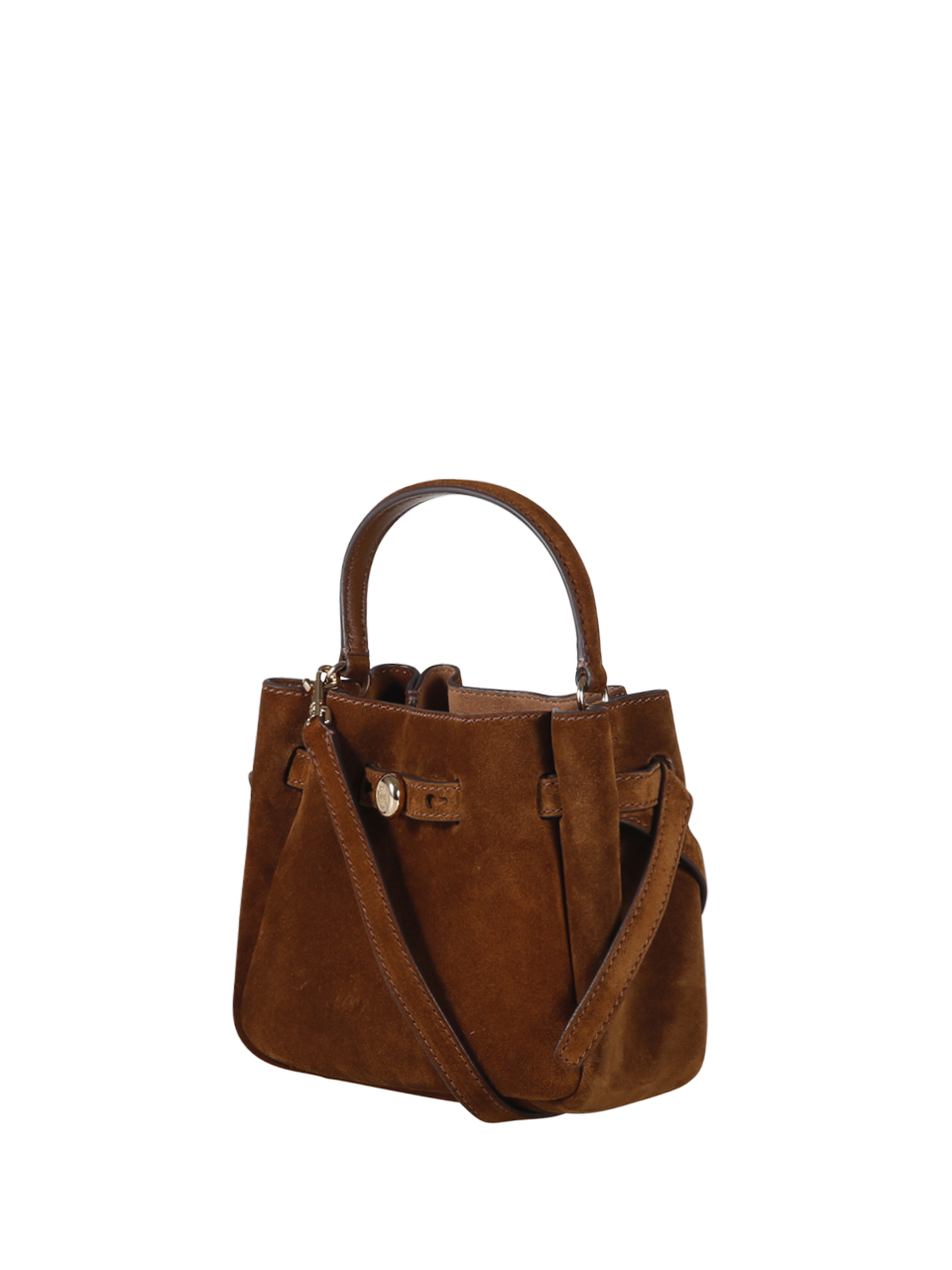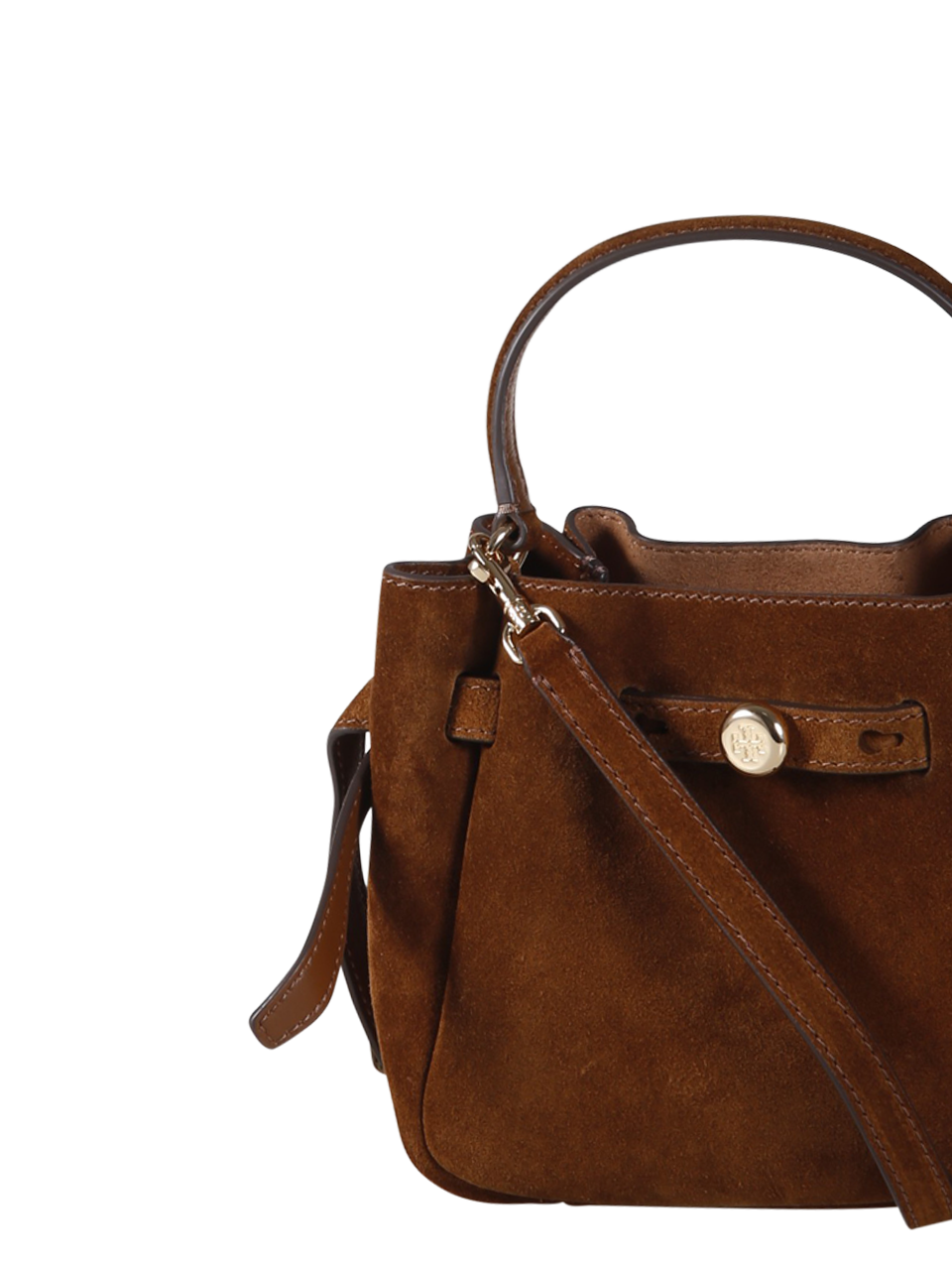 WOMAN TORY BURCH BROWN BOVINE SUEDE ROMY MINI BUCKET BAG