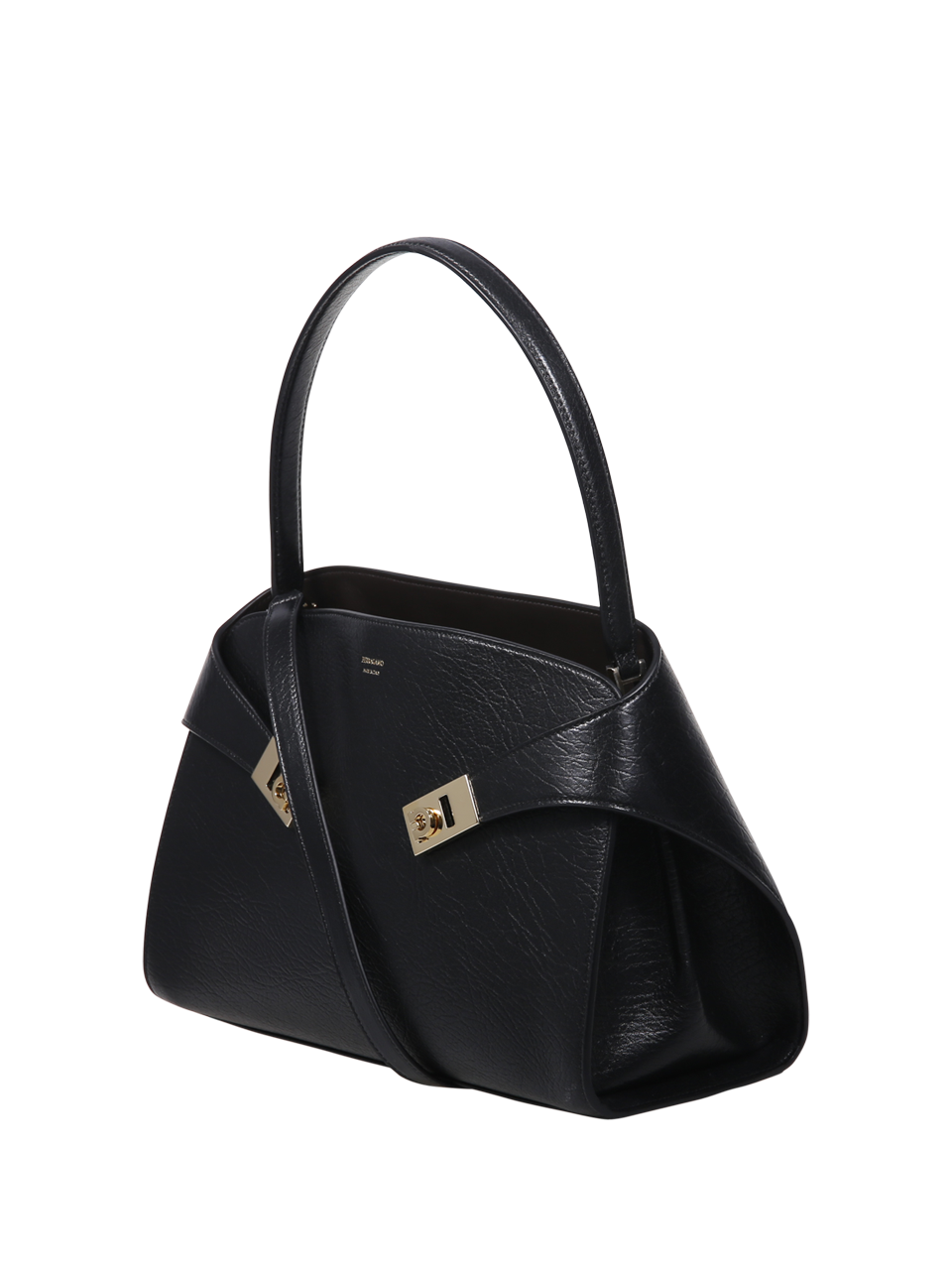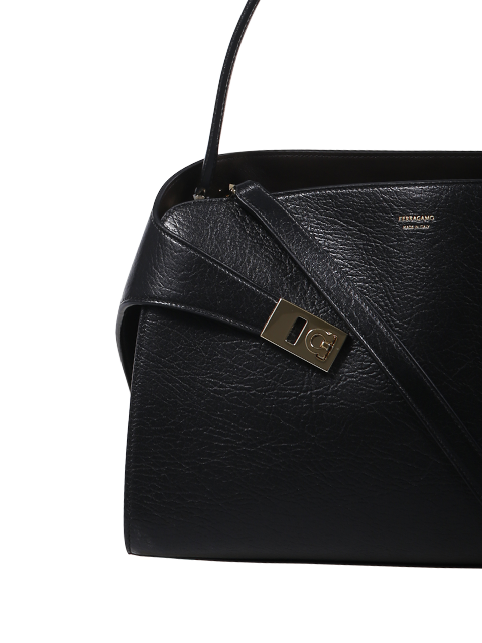 WOMAN FERRAGAMO BLACK CALF LEATHER HUG MAXI GRAIN BICOLOR HUG SH S BAG