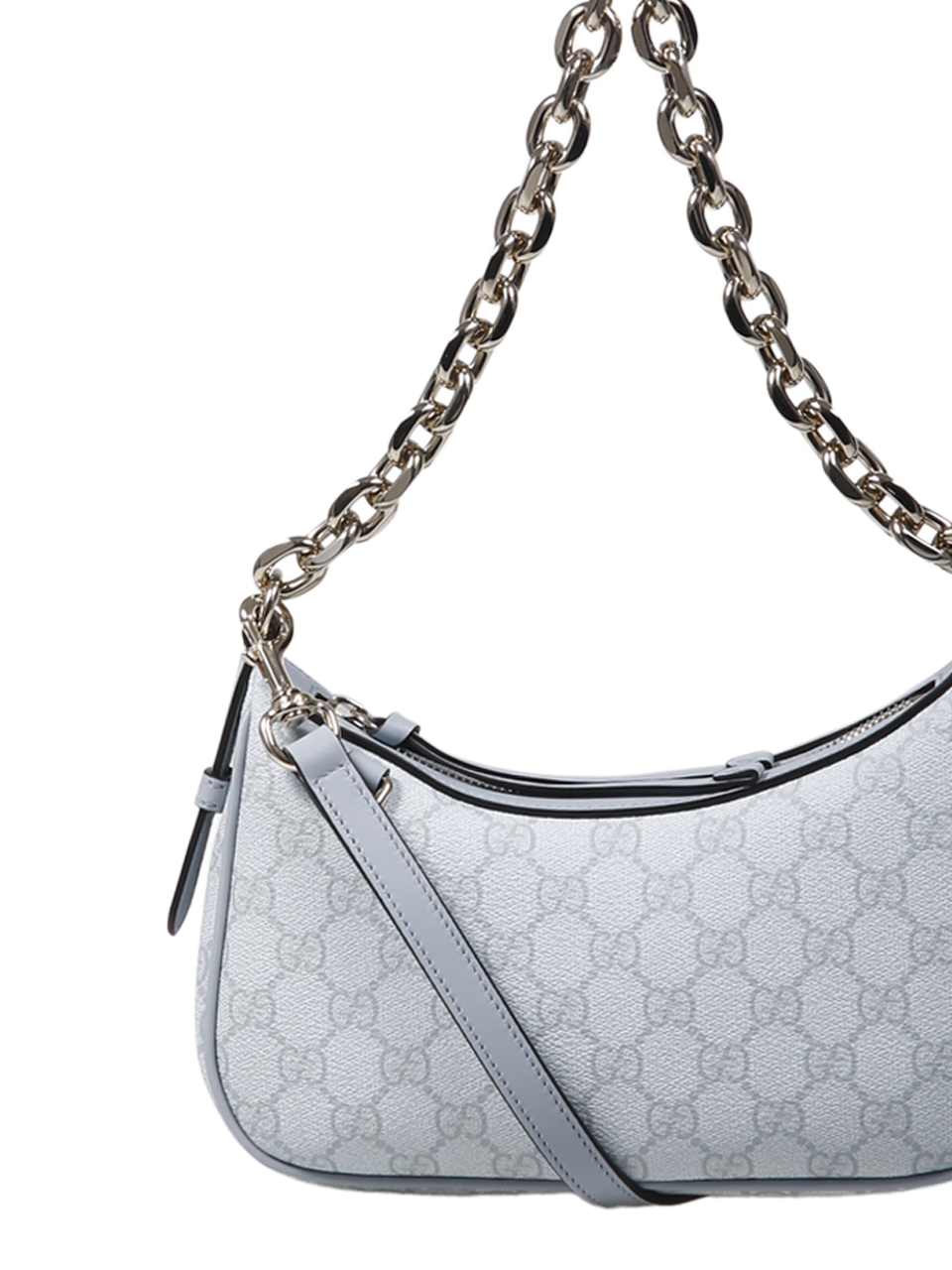 WOMAN GUCCI SKY BLUE CALF SKIN EMBLEM S SHOULDER BAG
