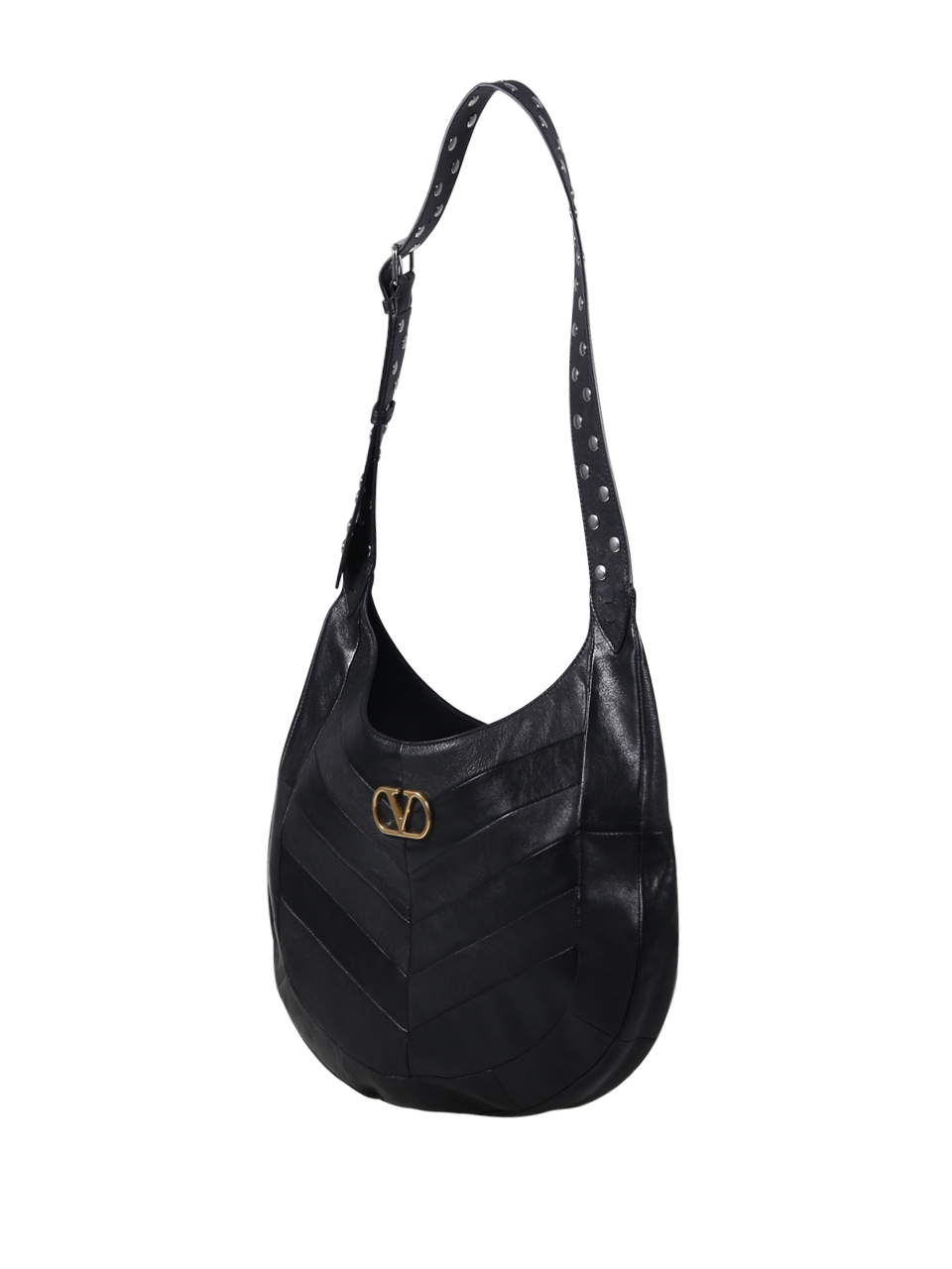 WOMAN VALENTINO GARAVANI BLACK LAMB LEATHER HOBOHO PATCHWORK SHOULDER BAG