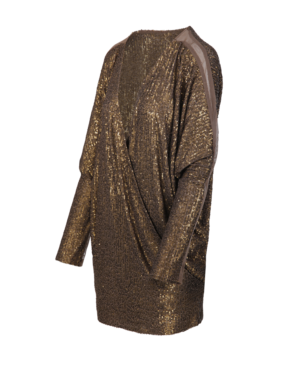 WOMAN NORMA KAMALI BROWN POLYESTER DOLMAN WRAP MINI DRESS