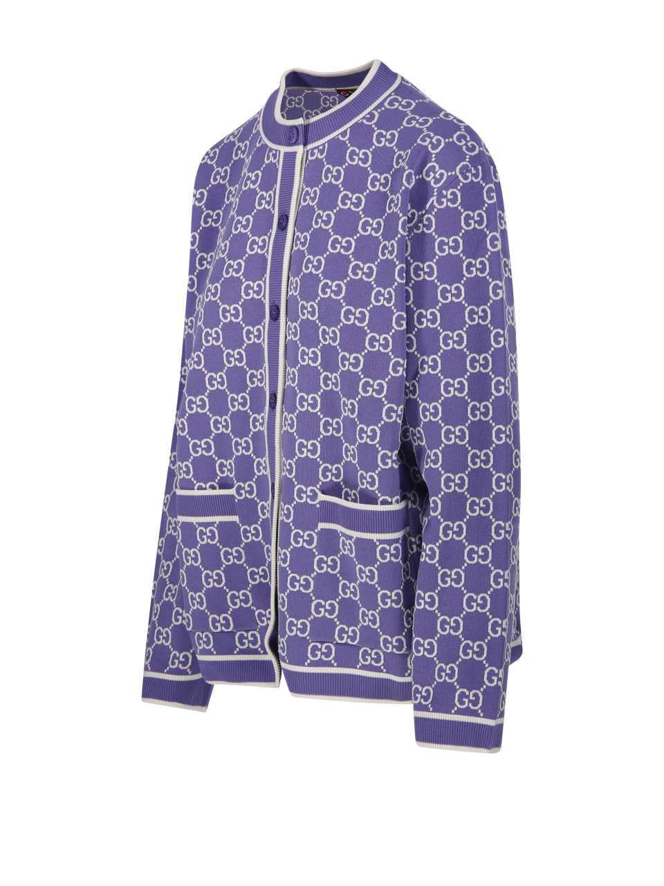 WOMAN GUCCI PURPLE COTTON ROUND NECK CARDIGAN