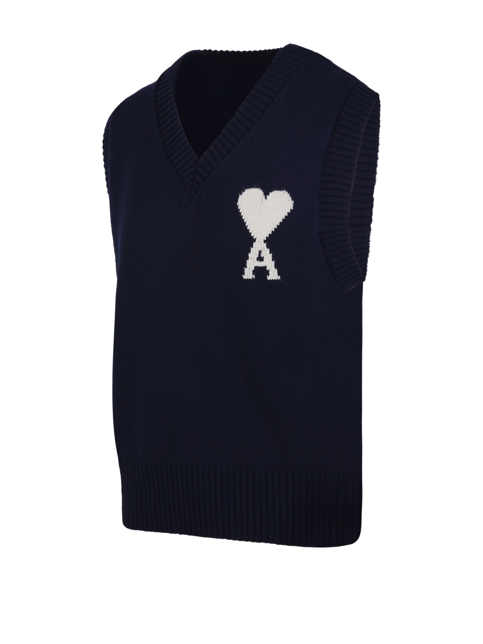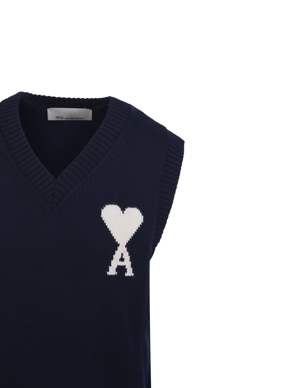 WOMAN AMI BLUE WOOL WHITE SLEEVELESS SWEATER
