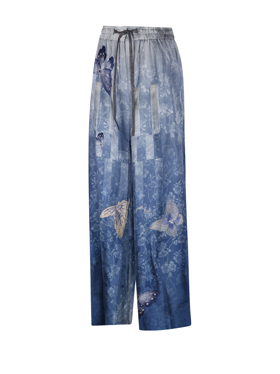 WOMAN PIERRE LOUISE MASCIA BLUE SILK ALOE TROUSER