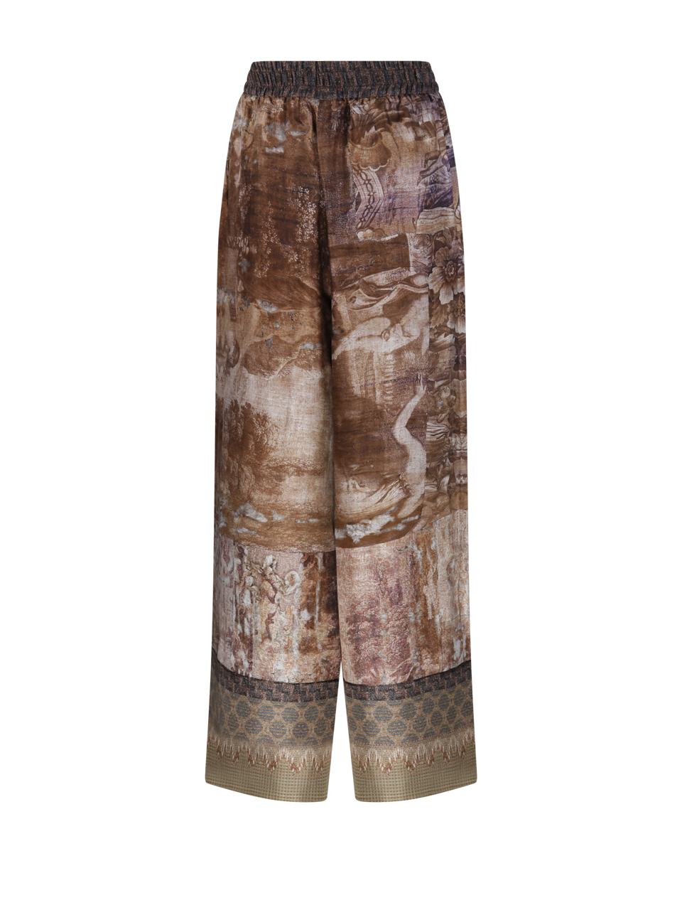 WOMAN PIERRE LOUISE MASCIA BROWN SILK ALOE TROUSER