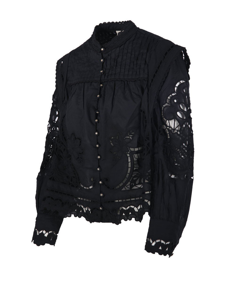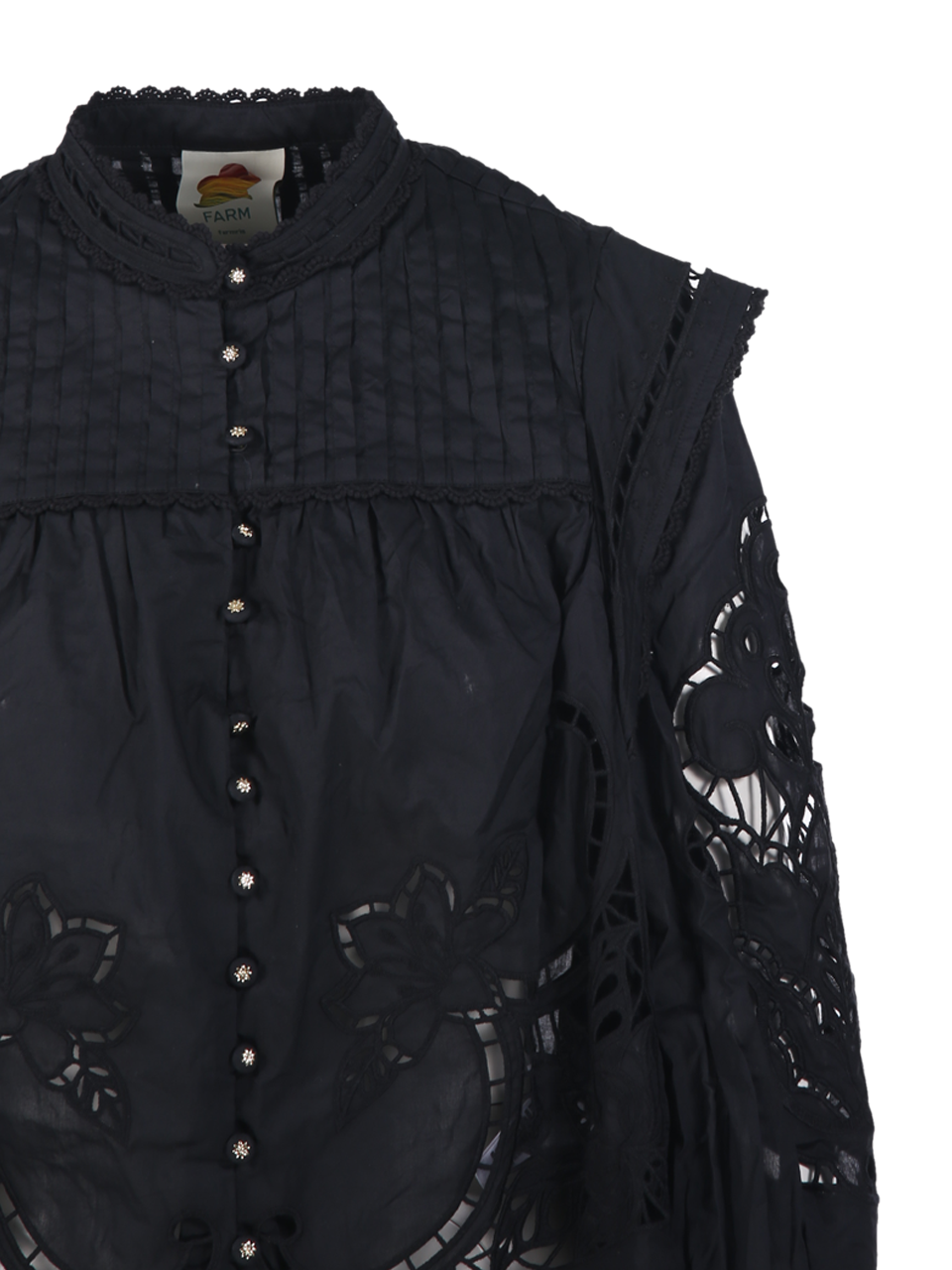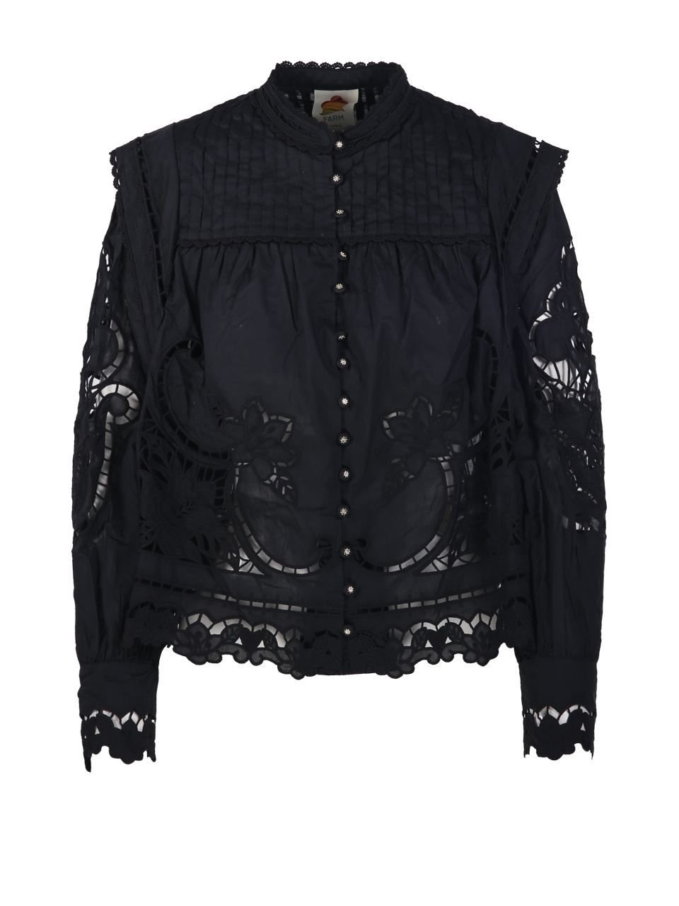 WOMAN FARM RIO BLACK COTTON RICHILIEU BLOUSE