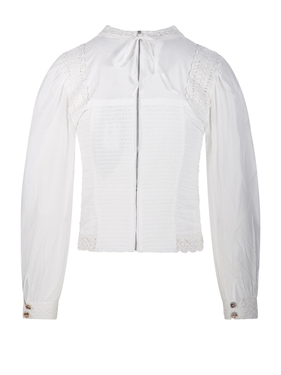 WOMAN FARM RIO WHITE COTTON OFF WHITE LONG SLEEVE CROCHET BLOUSE
