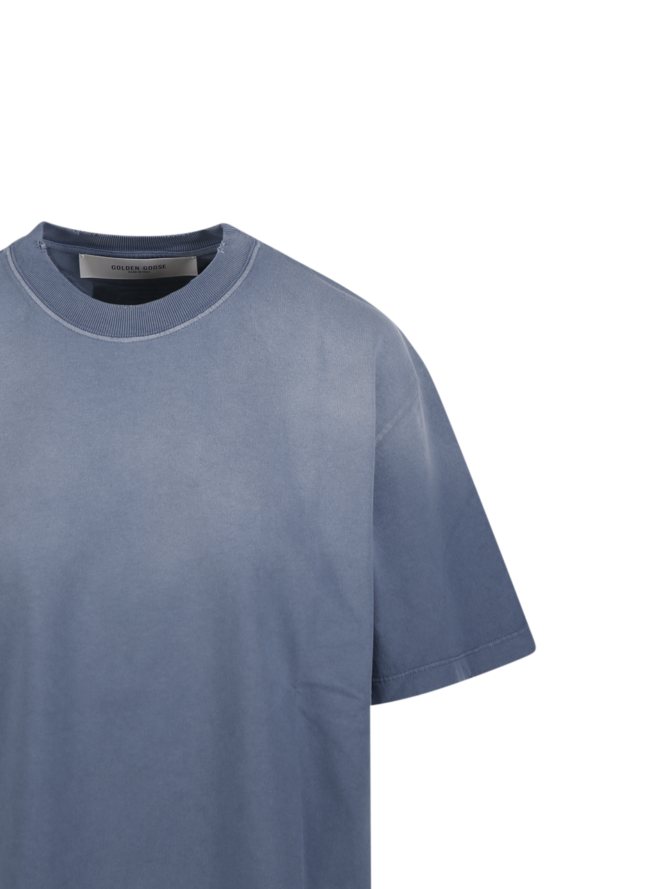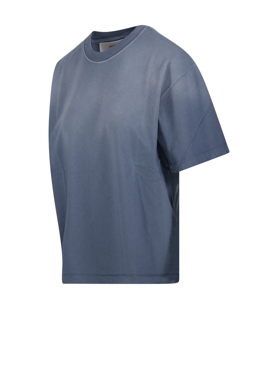 WOMAN GOLDEN GOOSE BLUE COTTON BOXI T-SHIRT LOGO PATCH