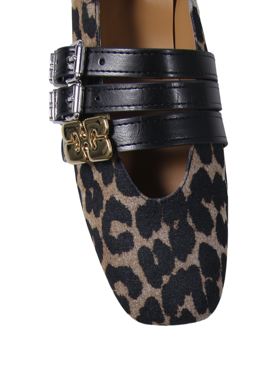 WOMAN GANNI BEIGE VISCOSE SUE TRIPLE BALLERINA FLOCKED DENIM PRINTED