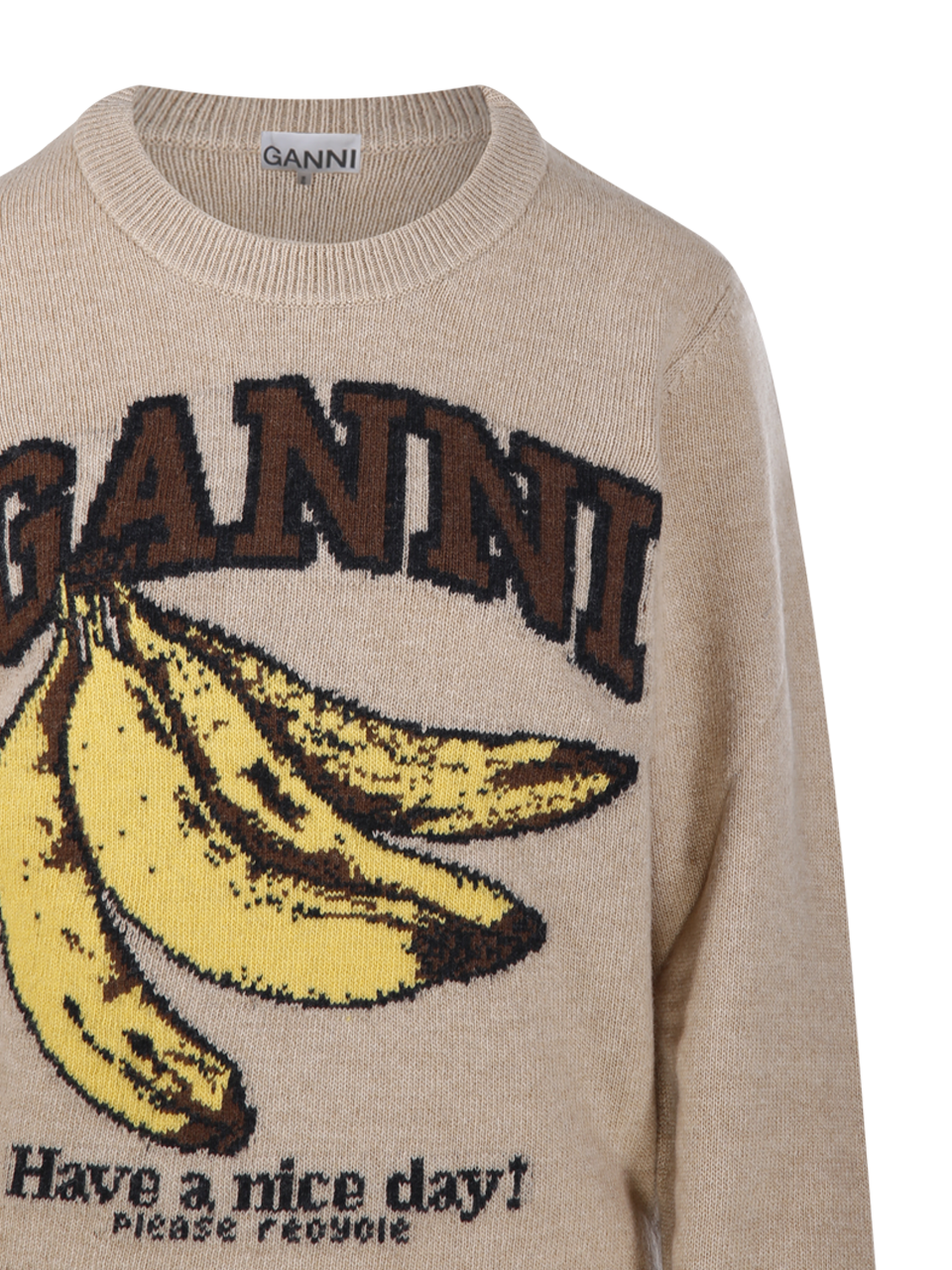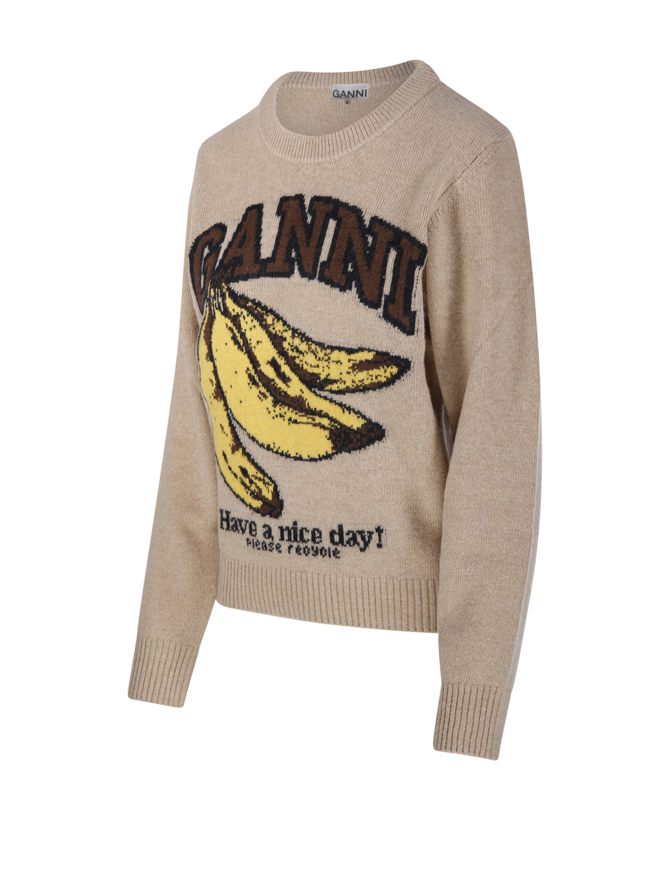 DONNA GANNI MAGLIONE BEIGE IN LANA CON GRAFICA