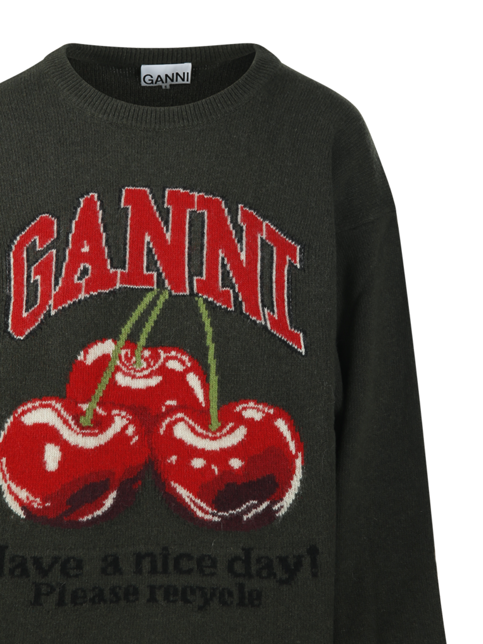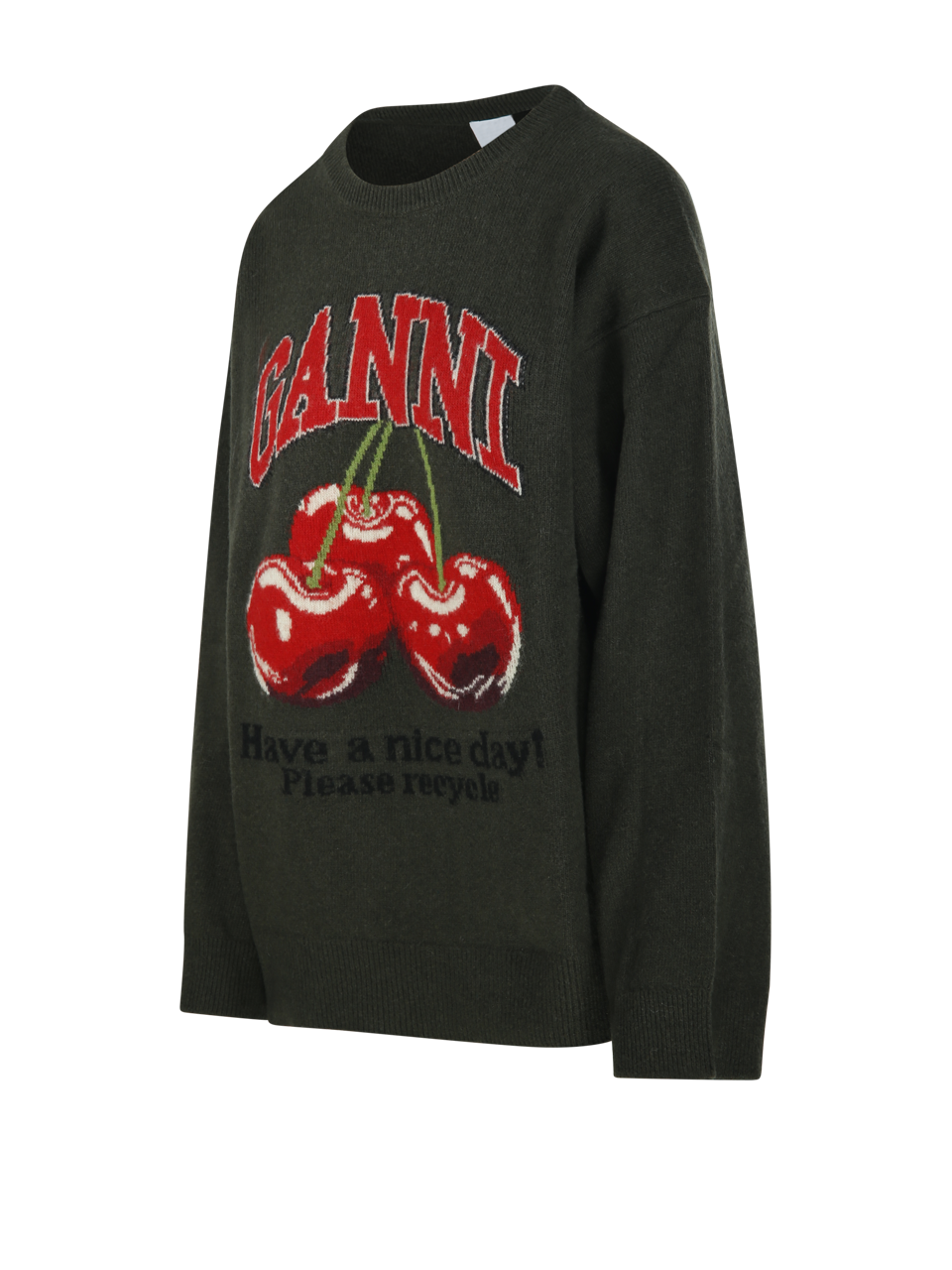 DONNA GANNI MAGLIONE OVERSIZE VERDE IN MISTO LANA CON GRAFICA