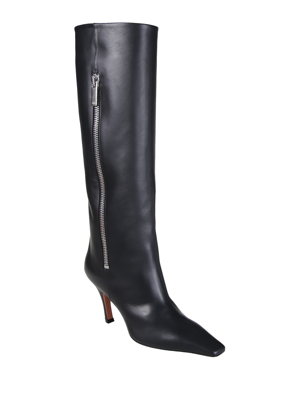 DONNA AMINA MUADDI STIVALE MONA CON ZIP IN PELLE DI VITELLO NERO